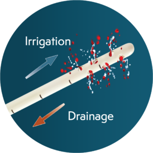 With its use of a patented dual-lumen catheter design, IRRAflow allows the user to transition from passive drainage to a therapeutic treatment with active fluid exchange. Utilizing this dual-lumen design enables periodic flushing of the catheter tip.